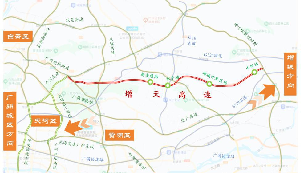 增天高速做为广东省高速公网的主要加密联络线,远期还要西连佛山,“从增城荔城到河汉华快段,透露:“增天高速是广州增城至佛山高速公(增城至河汉段),建立‘办事区—景区—农田‘联动的体验动线。